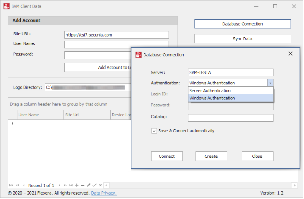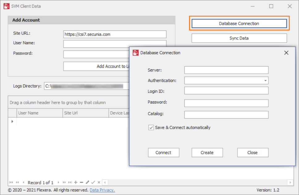 Double click on the shortcut created on your desktop, Flexera SVM Client Data windows pane appears.