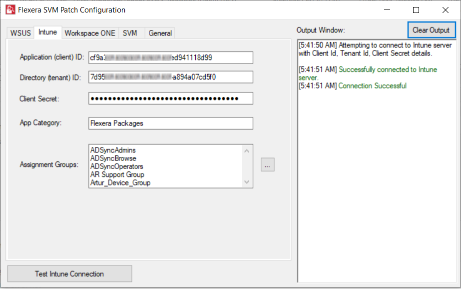 Click Test Intune Connection button, on successful connection you will receive a successful message in the Output Window.