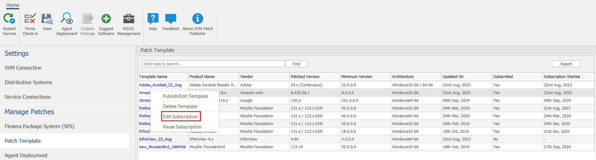 To use this option, navigate to Manage Patches > Vendor Patch Module or Manage Patches > Patch Template.
