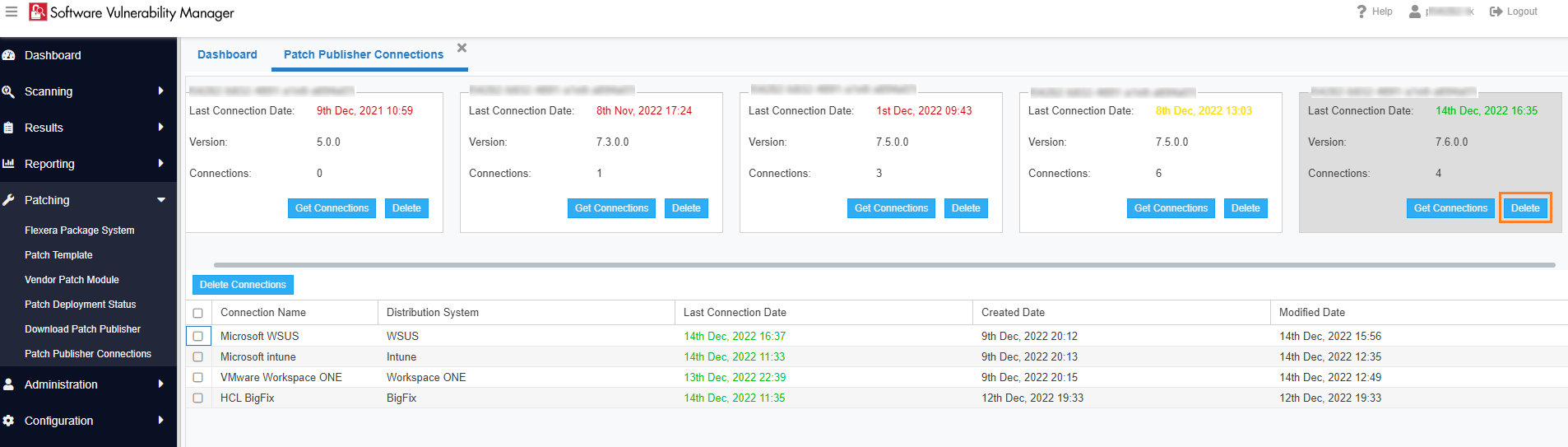 Select Yes or No to confirm whether or not to delete the Patch Publisher connection.
