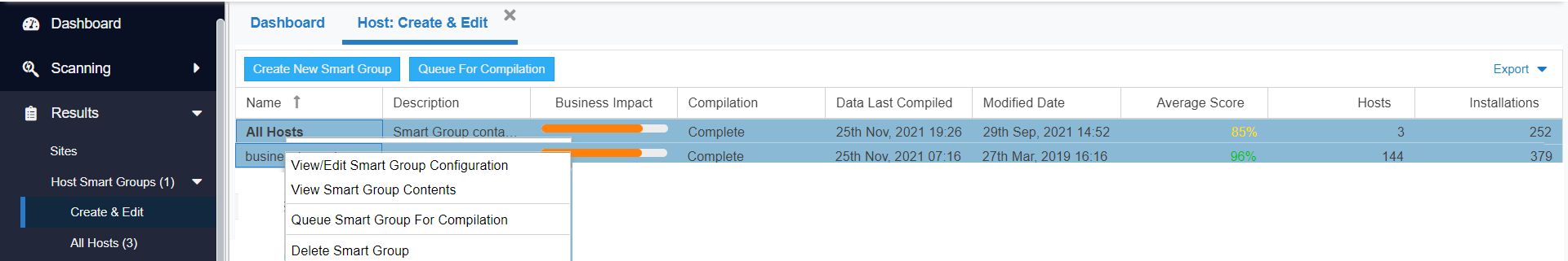 All Hosts is the default Smart Group and cannot be edited or deleted.