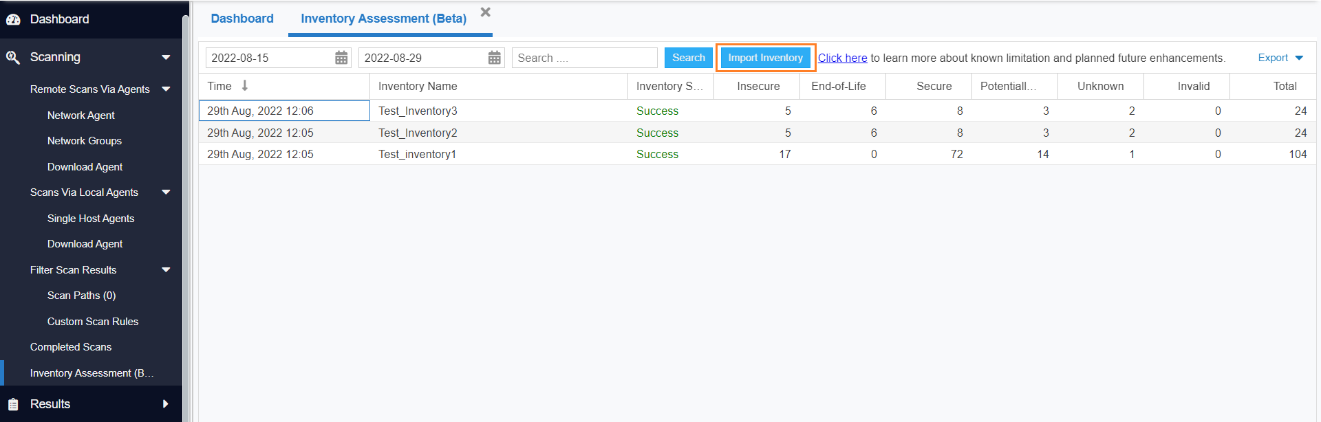Click Import Inventory in the Inventory Assessment (Beta) page.